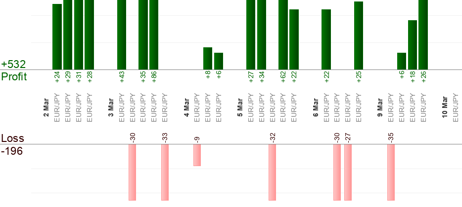 Beachten Sie bitte, dass verschiedene Makler haben unterschiedliche Quoten zur selben Zeit. Der Unterschied betragt in der Regel 5 Pips oder vielleicht mehr. Um dieses Problem zu beheben, versucht Foresignal den durchschnittlichen Wert fur alle Angebote von verschiedenen Brokern zu berechnen und "durchschnittliche" Ergebnisse zu liefern. Dennoch ist es moglich, dass Ihr Handel den Einstiegs-/Take-Profit-/Stop-Loss-Level erreicht, wahrend Foresignal das wegen der Unterschiede in Angeboten nicht tut und umgekehrt.
