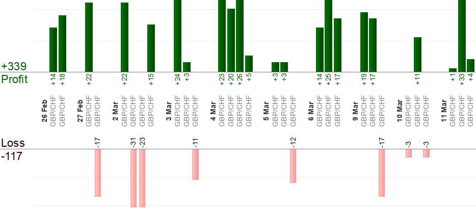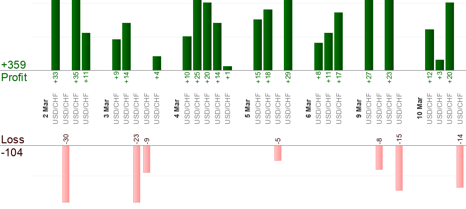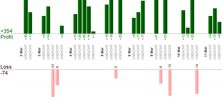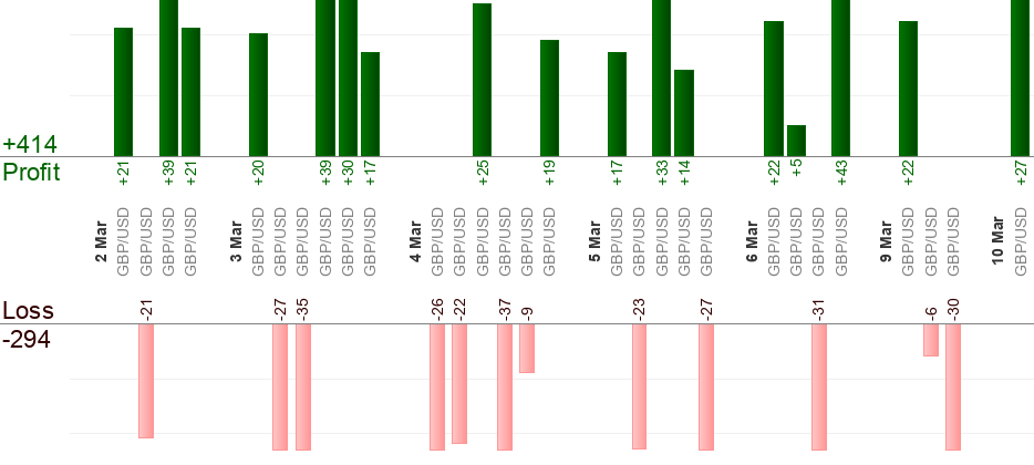 Eine anstehende Order soll beim Empfangen des Signals (zu der "Von"-Zeit) erteilt werden. Die "Bis"-Zeit ist fur erzwungenes Beenden bestimmt. Beliebige offene Handelsaktion gilt als erledigt, wenn die "Bis"-Zeit beinahe erreicht ist. Beliebige anstehende Order wird abgebrochen, wenn die "Bis"-Zeit beinahe erreicht ist. Trailing-Stop verwenden, um Gewinn zu maximieren.